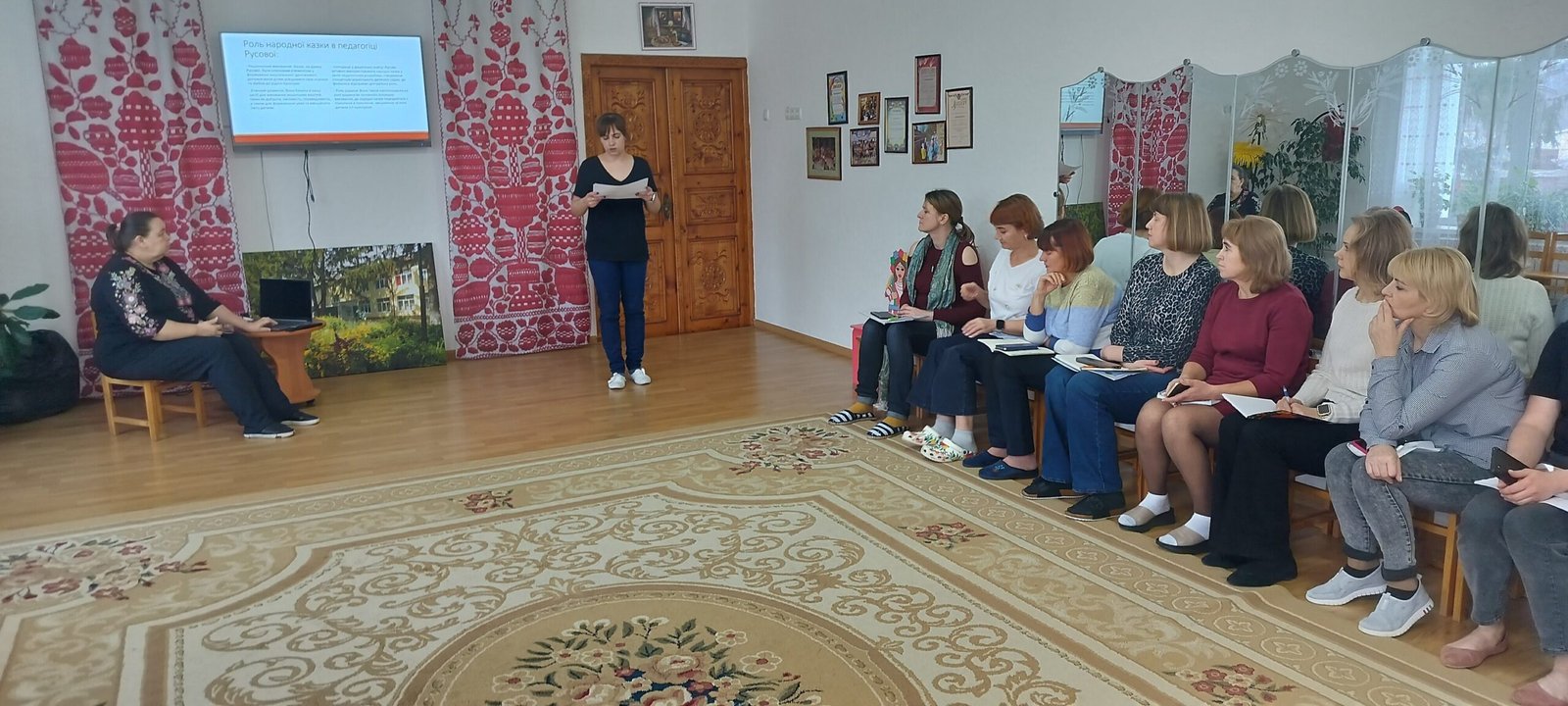Сьогодні, в рамках підготовки до педагогічної ради, проведене відкрите заняття з мовленнєвого розвитку вихователем Людмилою Домбровою, в старшій спеціальній групі «Вишенька» за темою «Прийдуть гості в нашу хату, будем чаєм пригощати» 21.11.2025